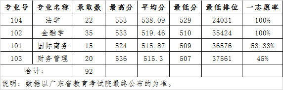 2020年广东省文科各专业录取情况表(中外联合培养项目班)