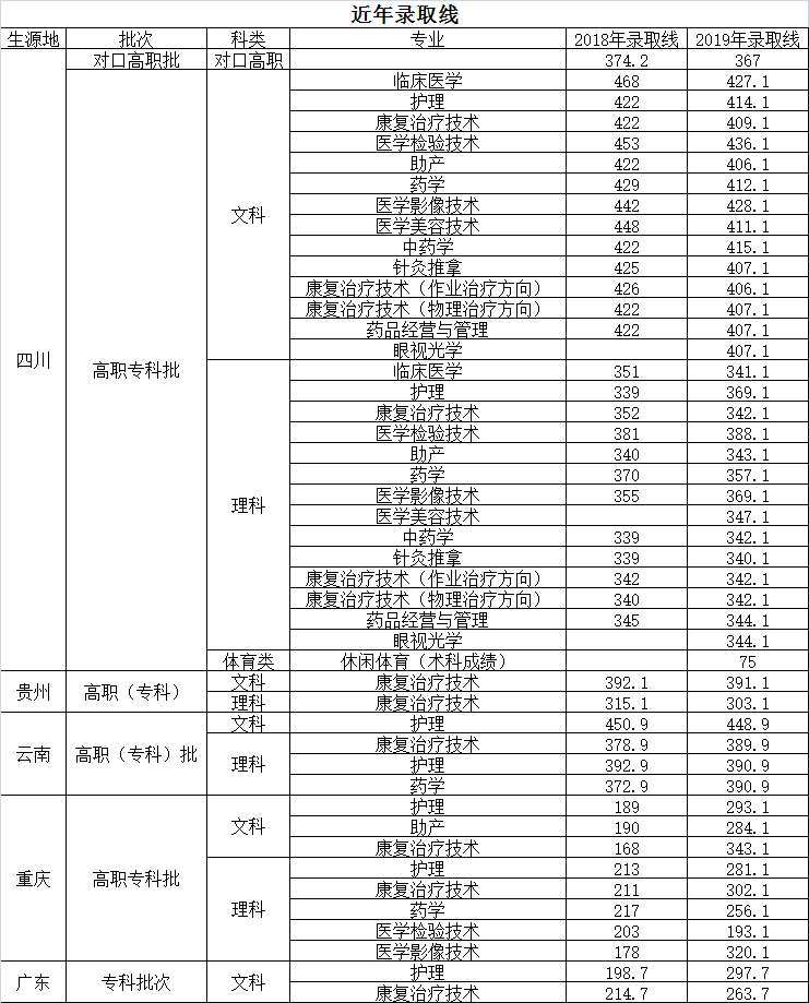 2018-2019四川卫生康复职业学院录取分数线【全国】