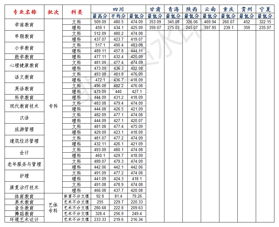 2018川北幼儿师范高等专科学校录取分数线【全国】