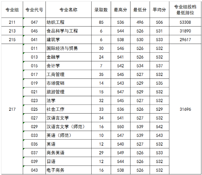 五邑大学2021年广东省物理科目组录取情况
