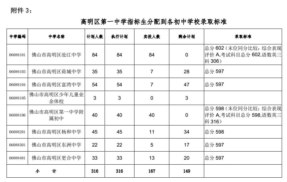 高明区2017年中考招生普通高中最低录取控制分数线及录取标准
