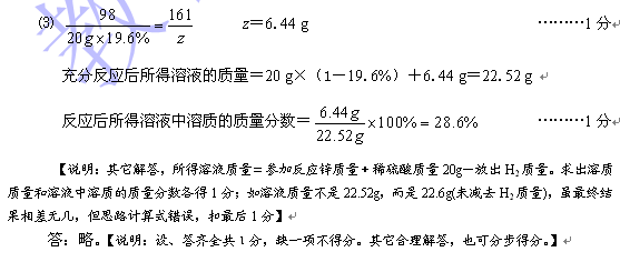 说明1:书写化学方程式时,只要化学式有错误,该空不得分;如化学式均正确,未配平或未注明反应条件或未注明状态符号共扣1分。
