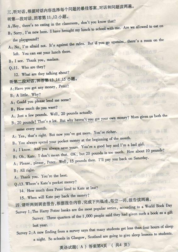 点击下载查看完整资料》》》》潍坊市2011年中考英语试题及答案