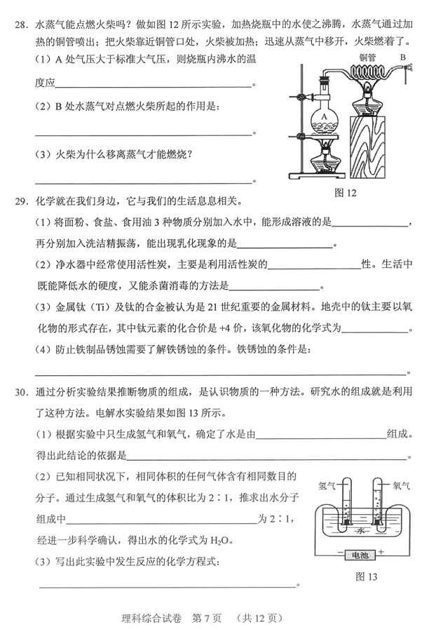 2011河北中考理科综合试题试卷及参考答案