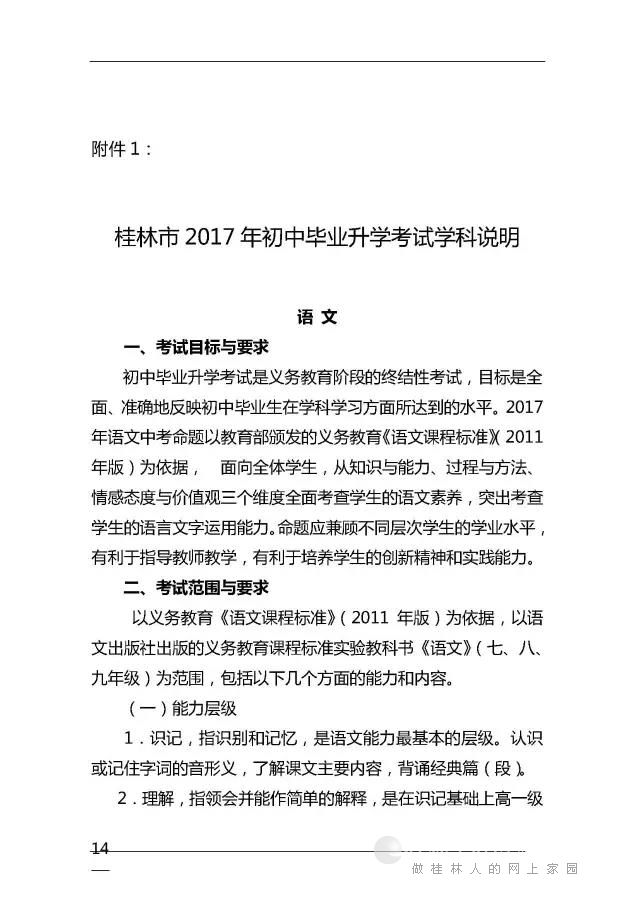 2017桂林中考考试说明大纲