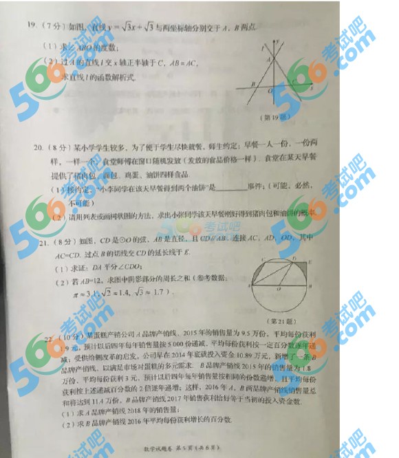 2016宜昌中考数学试卷试题及答案