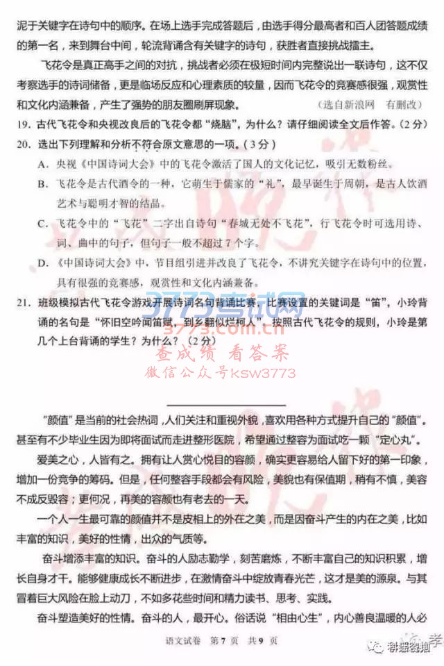 2017孝感中考语文试题及答案