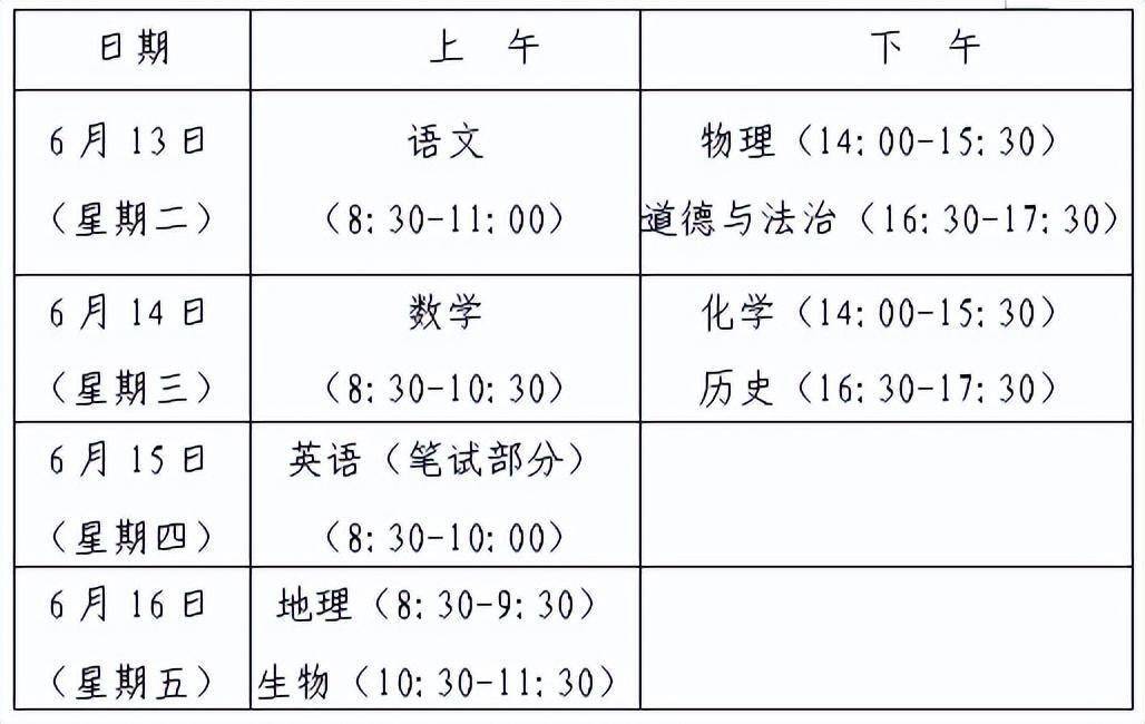考试科目包括语文、数学、英语(含听说测试)、物理(含实验操作技能)、化学(含实验操作技能)、道德与法治、历史、地理、生物、信息技术10科。各科成绩均以等级方式呈现。