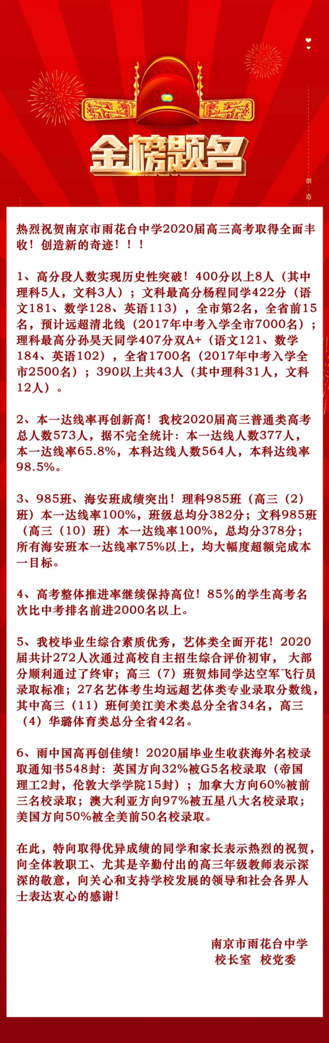 2020镇江市实验高级中学高考喜报成绩、本科一本上线人数情况