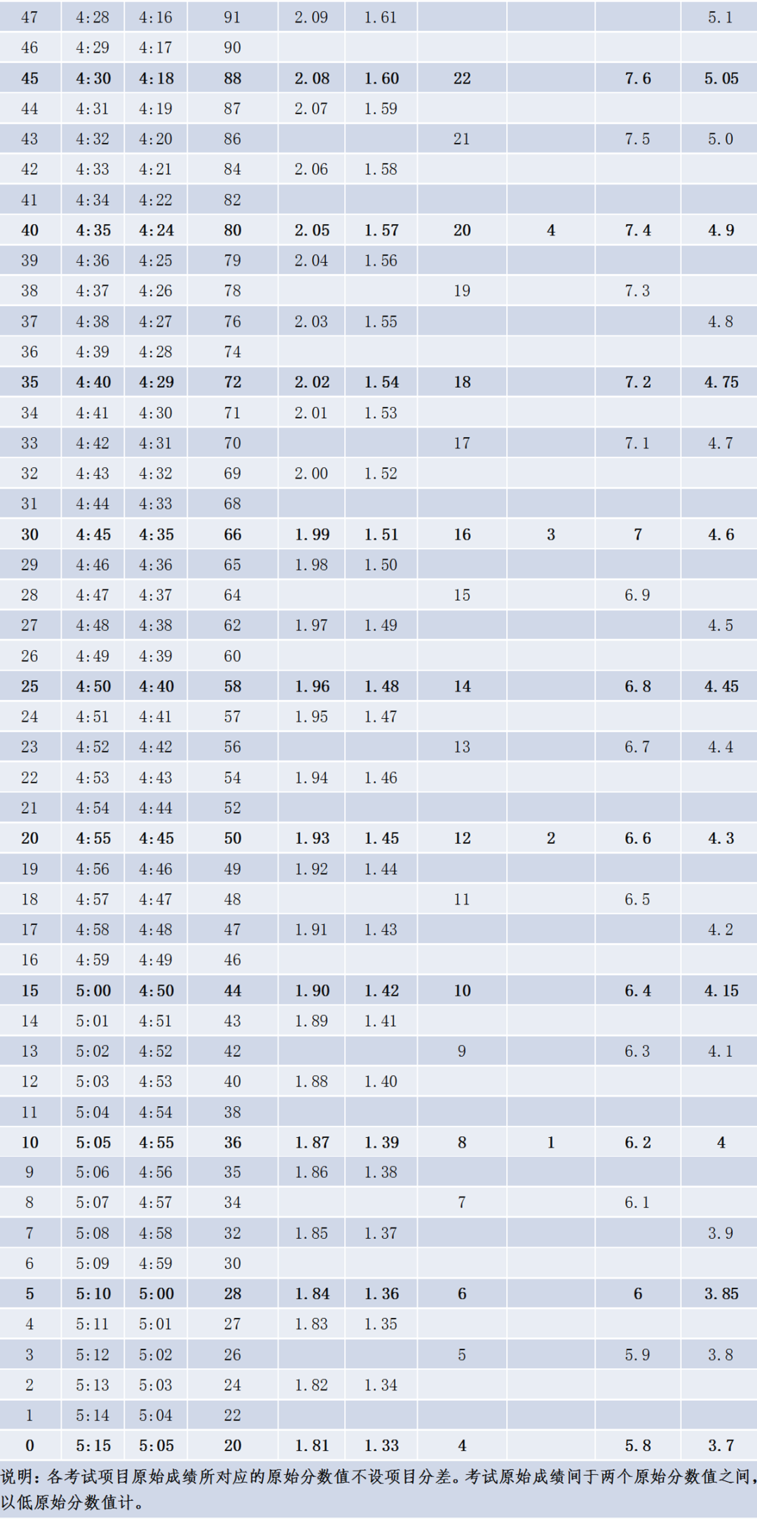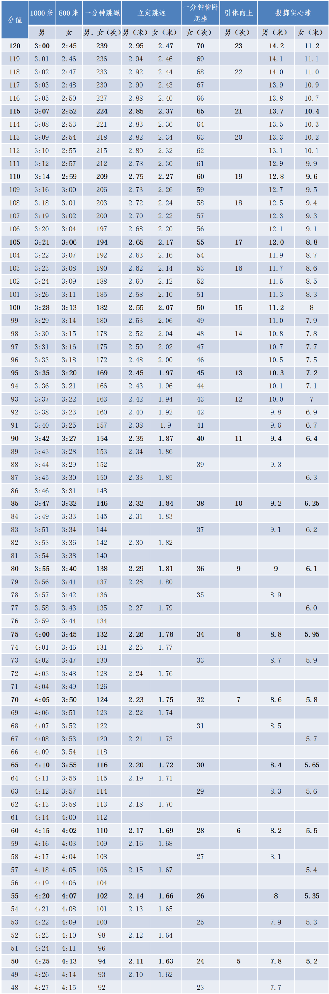 2020潮州中考体育考试评分标准